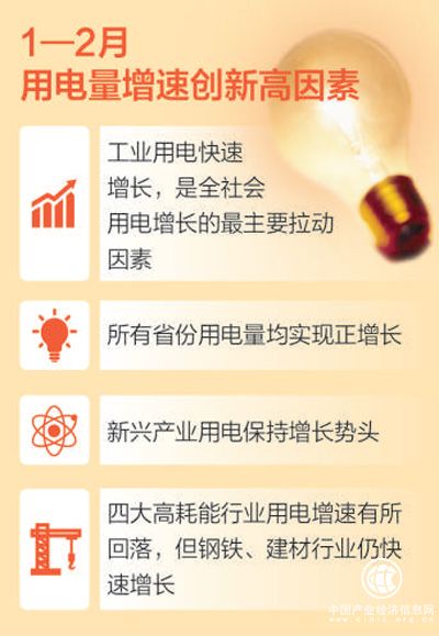 赵辰昕认为,主要经济指标的向好,是拉动全社会用电快速增长的主要原因。1—2月份全国规模以上工业增加值同比实际增长7.2%,增速同比和环比均有所提高;固定资产投资同比增长7.9%,比上年全年加快0.7个百分点。虽然天气、电能替代等因素对提高全社会用电增速也有一定影响,但总的来看影响较小。