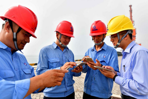 工人们聆听了习总书记的现场讲话,令大家印象最深的就是总书记说要想富先修路,沿海地区要想富也要先建港。