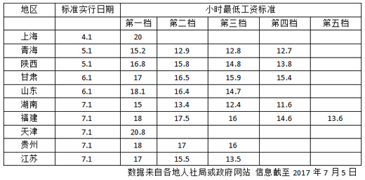 近日,贵州省、江苏省陆续宣布调整全省最低工资标准,据人民网不完全统计,截至7月,包括苏黔今年至少已有上海、青海、陕西、甘肃、山东、湖南、福建、天津等10个地区上调了最低工资标准。