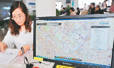 7月25日,在山东青岛市北区行政审批大厅内,新近启用的“商事地理坐标生态系统”正式服务于前来办理工商登记的企业。王海滨摄(人民视觉)